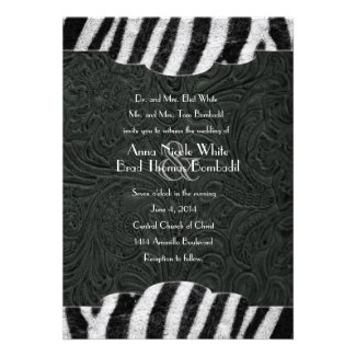 Black Leather Style Zebra Stripes Wedding Invitations