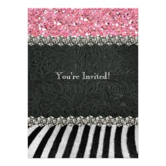 Zebra Black Pink Glitter Bridal Shower Invitation by RiverJude
